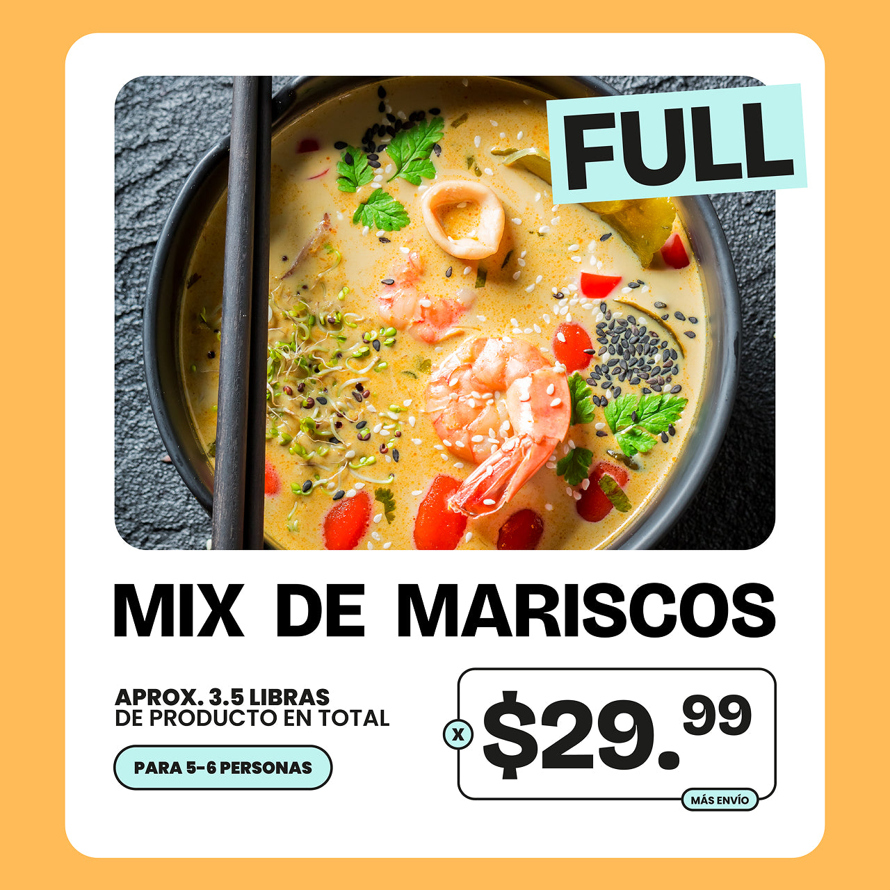🦐 Cantidad: Aproximadamente 3.5 lb en total, ideal para 5-6 personas.